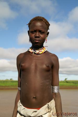 Chica Danasech - Omorate - Gamogofa - Etiopia: Una muchacha de la tribu danasech junto al rio Omo.