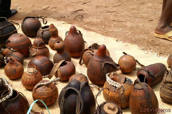 Calabazas decoradas -Keyafer - Valle del Omo - Etiopia: Puestos de venta de productos tradicionales en el mercado de Keyafer... aunque lo parezca, no son souvenirs sino envases para el transporte de liquidos.