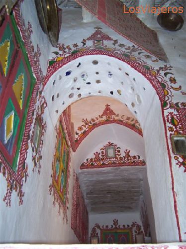 Ghadames, home interior - Libya - Ghadames,Interior de vivienda - LibiaGhadames, home interior - Libya: Whitewashed walls and arches, decorated whit complicated drawing patterns in deep red. Ghadames,Interior de vivienda - Libia: Paredes y arcos encalados, adornados con complicadas filigranas pintadas en color rojo