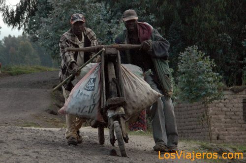 Rwandese population - Rwanda: Transporting merchandise in a bicycle done by they themselves Población ruandesa - Ruanda: Transportando mercancÃa en una bici construÃda por ellos mismos