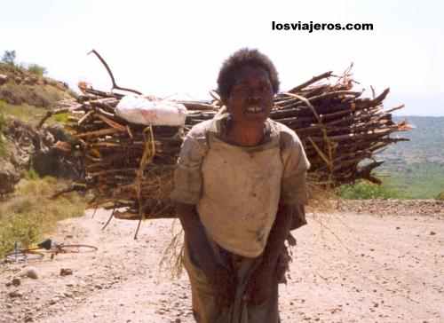 Mujer cargada en Arba Minch - Sur de Etiopia-: Mujer subiendo una cuesta con leña, desde el lago Chamo en Arba Minch.