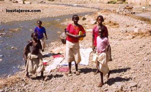 Gente de la tribu Konso - Sur de Etiopia: Gentes de la tribu Konso, junto a un pequeño arroyo del sur de Etiopia.