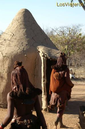 Himbas in their habitat - Namibia - Himbas con su habitat - NamibiaHimbas in their habitat - Namibia: The Himba are an ethnic group of about 12,000 people, living in northern Namibia. the women are famous for covering themselves with a mixture of butter fat, ochre, and herbs to protect themselves from the sun. The mixture gives their skins a reddish colour. Himbas con su habitat - Namibia: En mitad del poblado hay una raya. Solo dejan estar en el lado de los hombres, no se puede pasar al lado de las mujeres.