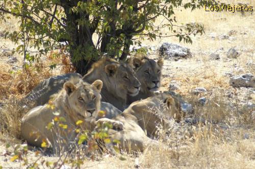 Leones en Ethosa Park, Namibia: La importancia de la espera. Siguiendo una leona unos 10 minutos dimos con esta manada de leones. La mirada es impresionante.