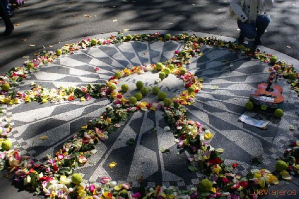 Strawberry Fields Memorial - New York - USA: Strawberry Fields is a small section in New York's Central Park that is dedicated to the memory of musician John Lennon. The entrance to the memorial is located on Central Park West at West 72nd Street, directly across from the Dakota Apartments.