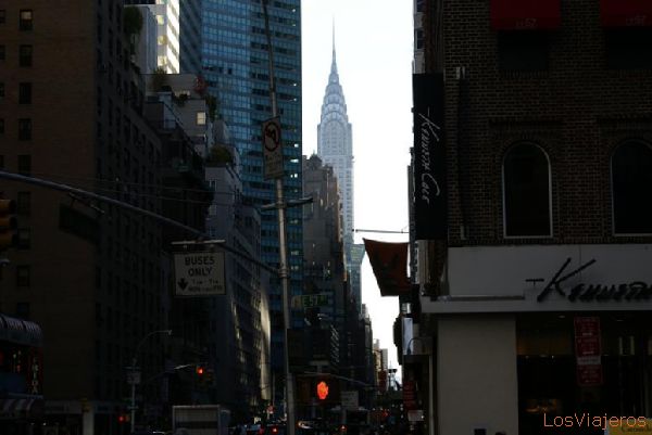 View of Chrysler Building from 42nd Street - New York - USA - Vista del Edificio Crysler desde la calle 42- Nueva York - USAView of Chrysler Building from 42nd Street - New York - USA: The 42nd Street lines some of New York's most important buildings, including the Chrysler Building, Grand Central Station and Times Square Vista del Edificio Crysler desde la calle 42- Nueva York - USA: La calle 42 es famosa por albergar algunos de los edificios más representativos de Manhattan, como el edificio Chrysler, la Estación Central o Times Square