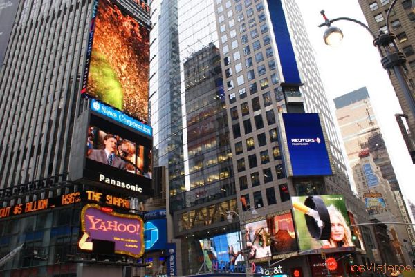 Times Square ads at noon - New York - USA: Times Square is home to some of the world's most spectacular signs incorporating innovative, cutting-edge technology