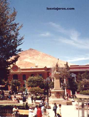 Cerro Rico -Potosi - BoliviaCerro Rico -Potosi - Bolivia: Plaza principal de Potosà y el famoso Cerro Rico, la gran mina de plata, al fondo.