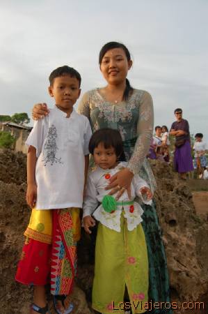 Familia balinesa con sarong -Bali- Indonesia: Familia balinesa con el traje tÃpico sarong
