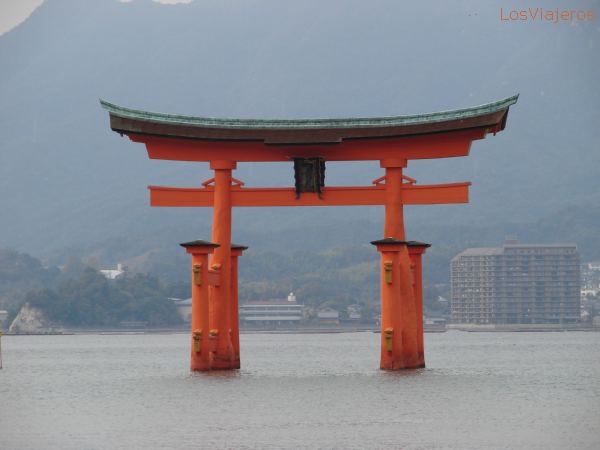 Torii Miyajima - Japón - Japon: Cuando sube la marea, el santuario de Itsukushima y el âtoriiâ, entrada a la isla de Miyajima, frente a Hiroshima, parecen flotar sobre el agua