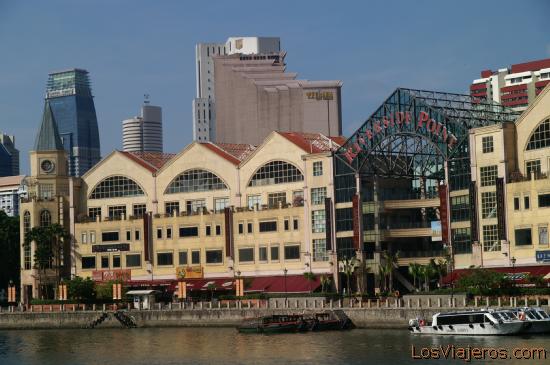 Quays on Singapore River: Clarke Quay is a lively area of chic restaurants and pubs, next to the Singapore River. Quays en el rio Singapur: La zona remozada de los muelles del rÃo Singapur.
