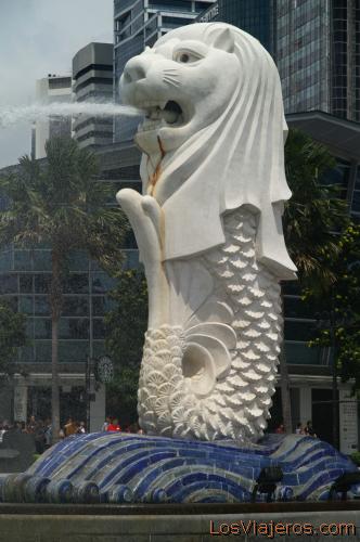 La estatua de Merlion - Singapur: El merlion es un animal mitologico que se supone protege a la ciudad de Singapur.