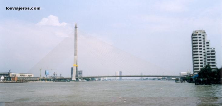 Rama VIII Bridge - Bangkok - Thailand: The modern Rama VIII Bridge over the Chao Phraya river. Puente de Rama VIII - Bangkok - Tailandia: el moderno puente de Rama VII sobre el rio Chao Phraya.