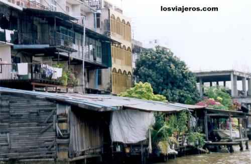 Houses over the Chao Phraya river. - Thailand: Houses over the Chao Phraya river. Casas en el rio Chao Phraya - Bangkok - Tailandia: Casas junto al rio Chao Phraya.