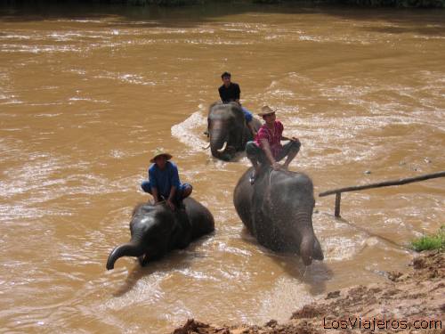 Elephant's bathing in the Working Camp - Thailand: We can see the elephant's bathing in the river.