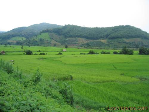 Arrozales camino de Chiang Rai - Tailandia: Por el camino se pueden ver grandes extensiones de arrozales