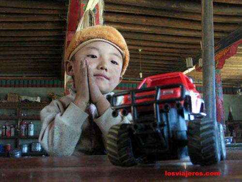 Boy - Gutso - Tibet - China: Tibet. Niño en Gutso - Tibet - China: Un niño adora su juguete - TÃbet.