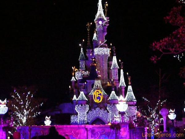 Castle of the Sleeping Beauty illuminated - Disneyland ParÃs - France: Already it has got dark and the Castle of the Sleeping Beauty shows all its brilliance illuminated specially for 15 anniversary of the Park Castillo de la Bella Durmiente iluminado - Disneyland ParÃs - Francia: Ya ha anochecido y el Castillo de la Bella Durmiente muestra todo su esplendor iluminado especialmente para el 15 aniversario del Parque