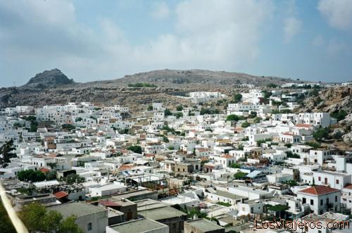 Rhodes-View of Lindos-Greece: The modern city of Lindos at the foothill of the Acropolis.