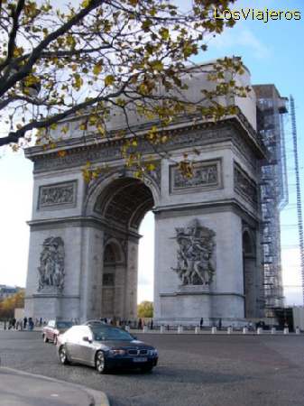 Arc du Triomphe -Paris- France: The Arc de Triomphe de l'Etoile, the world's largest triumphal arch, forms the backdrop for an impressive urban ensemble in Paris. Its deceptively simple design and immense size, 49.5 m (162 ft) in height, mark it unmistakably as a product of late 18th-century romantic neoclassicism.