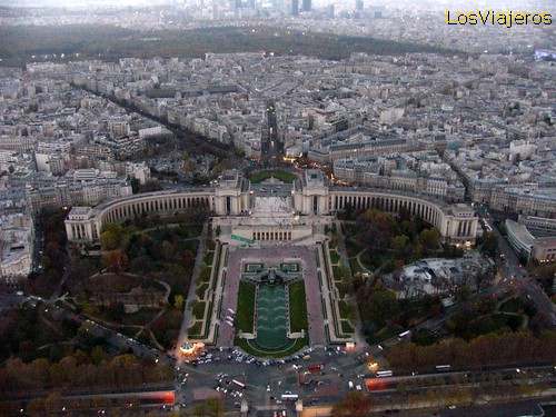 Trocadéro Square from top of the Eiffel Tower - France: Sunset picture of the Trocadéro gardens. La Plaza del Trocadero desde lo alto de la Torre Eiffel - Francia: FotografÃa del atardecer de los jardines de Trocadéro.
