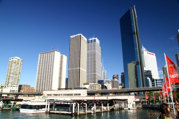 La ciudad de Sidney - Australia: Vista de la ciudad desde el puerto, una animada zona de museos, restaurantes y centros culturales y comerciales.