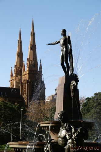 Catedral y fuentes de Hyde Park -Sidney- Australia: .