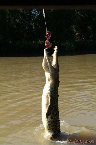 Cocodrilo saltando -Rio Adelaida- AustraliaCocodrilo saltando -Rio Adelaida- Australia: Impresionate salto de un cocodrilo para capturar un trozo de carne. Mas de 80.000 cocodrilos de aguas saladas viven en el Territrio del Norte, pese a ello es dificil verlos. Los rios y bahias de todo el Territorio estan señalizados con carteles avisando del peligro..