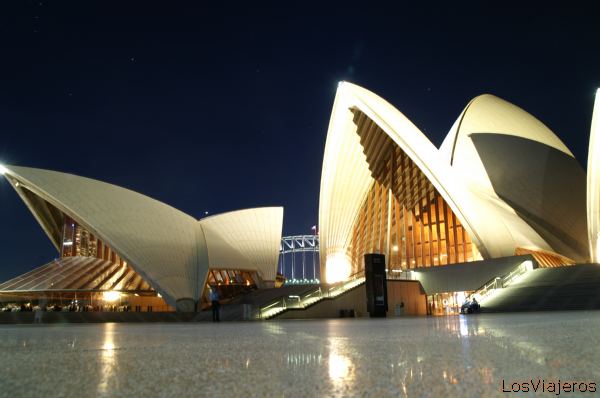 Opera de Sidney - Australia: Entrada al edificio mas emblemático de Australia. Durante la noche el edificio iluminado reesplandece en el puerto.