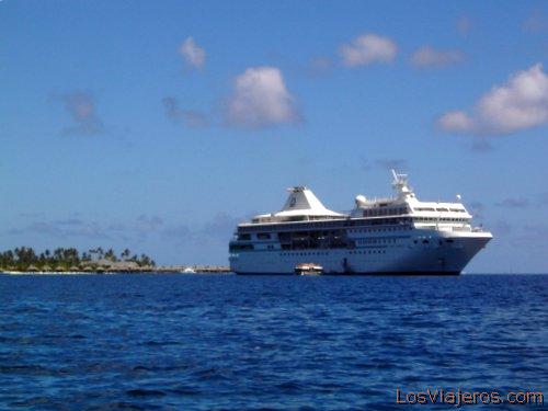 Vista del Hotel Laguna y del Crucero Paul Gauguin - Oceania: El Crucero Paul Gauguin es un crucero de lujo con 300 pasajeros
