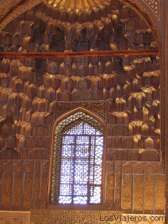Guri Amir Mausoleum cupola - Samarkand - Uzbekistan - Asia: The cupola is decorated in gold. Cúpula del Mausoleo de Guri Amir.-Samarcanda -Uzbekistan - Asia: La cupula está ricamente decorada con pan de oro