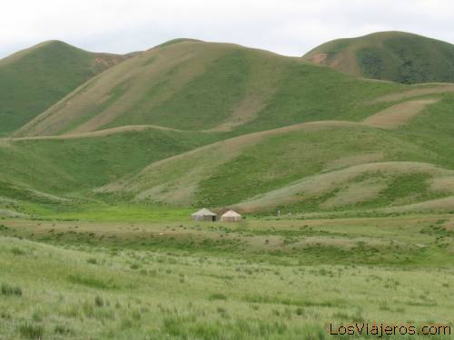 The way from Son Kul Lake a Tash Rabat-Kyrgystan - Asia: The camping of shepherds "yurtas" Camindo de Son Kul Lake a Tash Rabat.-Kyrgystan - Asia: Campamento de yurtas de pastores.